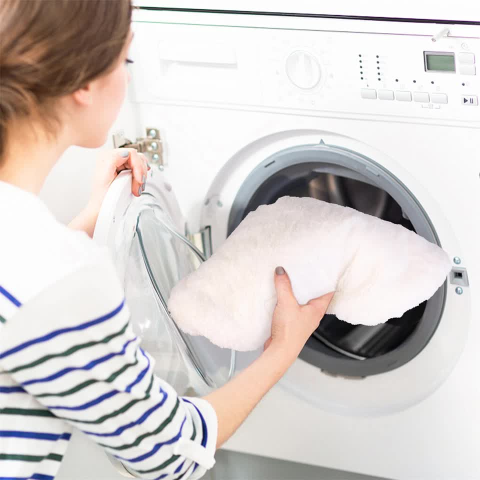 Made of solid wood and artificial animal wool with soft washable cushion.