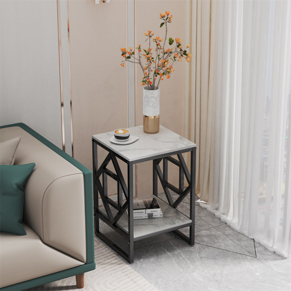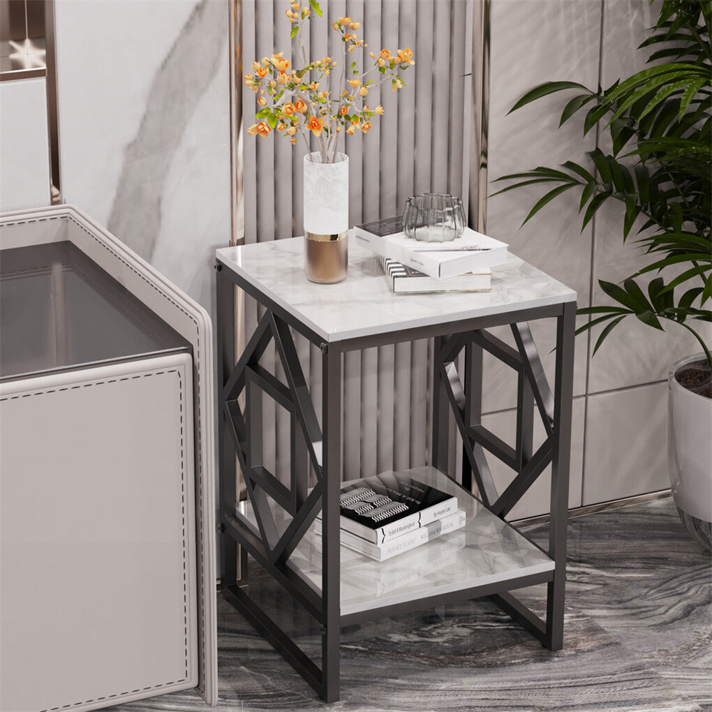 Sleek White Marble Side Table Sofa End Table Bedside Nightstand w Durable Frame