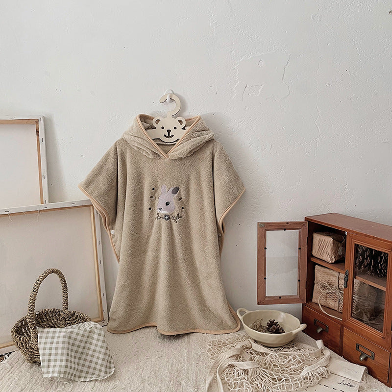 Ultra-Soft Hooded Bath Towel for Kids – Coral Fleece Poncho with Charming Animal Design, Quick-Dry Absorbent Robe for Bath, Pool, Beach (Bunny)