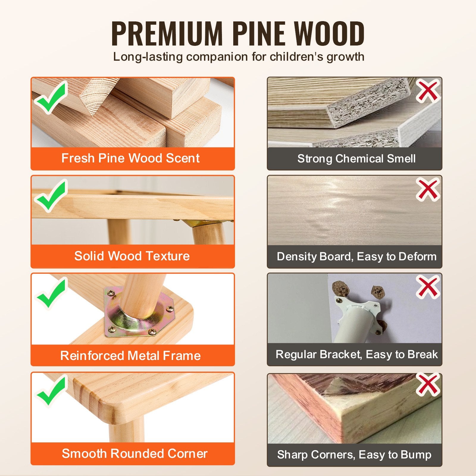 The tabletop and legs are made from natural pine wood, meticulously polished with no sharp corners or burrs, making it safe for your children. With 1-inch thickened tabletop combined with the MDF board, our sensory table for toddlers can support up to 66 lbs, ensuring long-lasting durability and reliability as your child grows and plays.